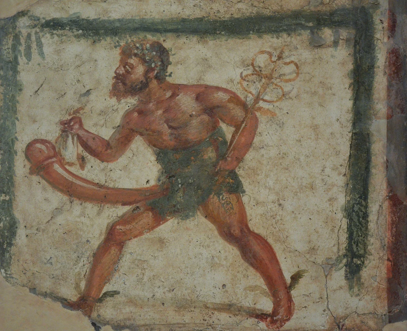 As explained by John R. Clarke in his book, Looking at Laughter: Humour, Power, and Transgression in Roman Visual Culture, 100 B.C. – A.D. 250, the painting demonstrates the triple prosperity that the god will give to both the household and its visitors. Most striking of these is financial prosperity. Reflected by the weighing of his comically oversized and erect phallus which he is weighing against a sack of money. The scale is balanced, showing the wealth of the owners of the home. Secondly, the god’s rustic ties are shown through the woven basket of perfectly ripe fruit and vegetables placed at his feet. These ensured the success of the inhabitants’ agricultural pursuits, which included their business selling wine (this is also reiterated in another room of the House of the Vettii, the so-called Room of the Cupids, where a frieze depicting the wine-making process adorns the walls). The final type of prosperity promised by the god is personal. The huge phallus promises literal fertility, hence the sacrifices made to him by Roman men. The location of the painting was intentional, at the threshold of the home. Perhaps people stroked the image for good luck as they passed through.