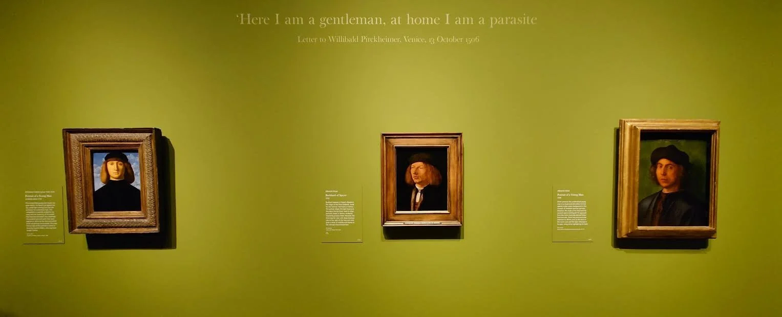 To achieve this, every room contains works by other artists of Dürer’s time, generally linked to the geographic or artistic themes that define each compartmentalised space (conveniently distinguished by colour of room). For some visitors, this approach is a source of frustration: some reviews have argued that there is not actually enough art by Dürer himself, and that the presence of contemporaries detracts from the brilliance of his own work. This is a flawed criticism on two counts. Firstly, the presence of Dürer’s fellow artists is vital to the topic of the exhibition: it is a demonstration of artistic discovery, not just an intellectual trip around Europe. In order to demonstrate how Dürer was inspired by his contemporaries (as well as those he influenced), it is essential that the exhibition offers visual evidence of the worlds he visited. In the context of the Northern and Italian Renaissances, no piece of art, technique nor idea is created in vacuum. Comparing Dürer with the great contemporary painters of Italy or Flanders is imperative to presenting him within the artistic spheres with which he interacted.