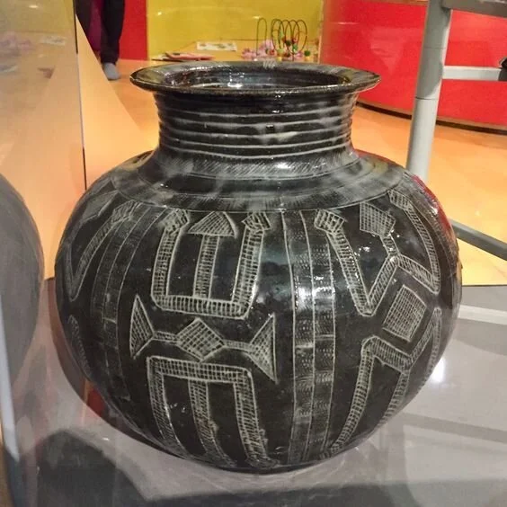 Ladi Kwali (1925-1984) was one of the first Nigerian potters to achieve international recognition as a coil pottery artist, and her works engage with both indigenous pre-20th century traditions and twentieth century Nigerian modernism. Born in the village of Kwali, in the Gwari region of central Nigeria, her earliest works were influenced by the pottery of the Gbagyi ethnic group, part of an ancient Nigerian tradition of work in clay which includes the terracotta sculptures of the Nok. Although ceramics are frequently labelled as ‘craft’ as opposed to art in Western narratives of art history, the perception of Kwali in Nigeria, and arguably internationally, is very much as an artist and not as a craftswoman. Her works can be found in eminent private art collections in Nigeria, and in major museums abroad, such as the British Museum, and the Smithsonian Institution.
