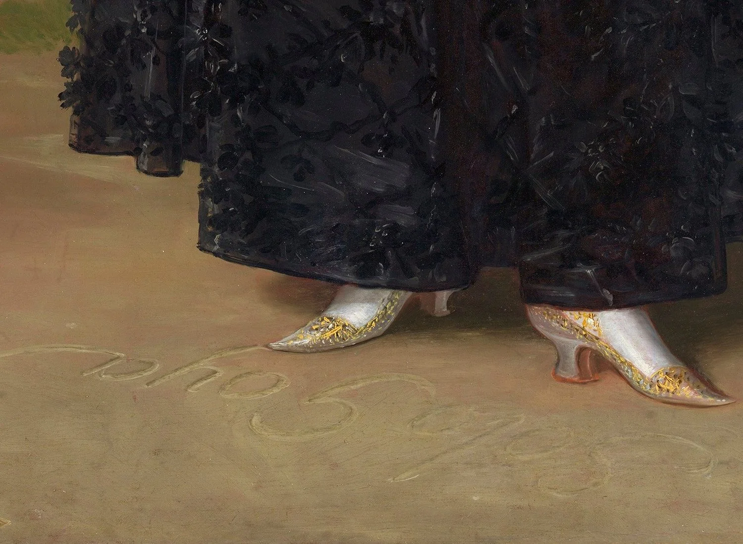This is probably the most famous painting in the exhibition, and it depicts the Duchess of Alba in mourning clothes. The Duchess of Alba was one of the most striking figures at court in late 18th-century Spain, and here Goya seems to capture her air of charm and confidence. After her husband died a year beforehand, the Duchess retreated to her estate at Sanlúcar de Barrameda for a period of mourning; Goya joined her there, where he would create numerous portraits of her. In this painting, the Duchess points towards the ground at the words ‘solo Goya’ (‘only Goya’) which have been written in the sand, and she also wears two rings - one engraved with ‘Alba’ and the other with ‘Goya’. These details have often been used to support the speculation that Goya was romantically involved with the Duchess. Whether or not this was true, the pair certainly shared a close bond and the Duchess was an important source of inspiration for many of his paintings. In fact, Goya kept this particular painting in his studio long after the Duchess’ death in 1802.