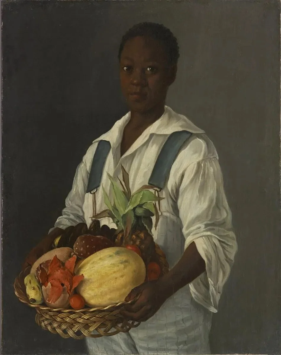 This is the first painting to greet visitors as they enter the exhibition. It depicts a young man from the Mexican coast. The young man depicted was most likely from Veracruz in Mexico, which was historically the first point of entry for slaves brought from Western African into Mexico. The painting is a testament to the large Afro-Mexican population in 19th-century Mexico, which still remains today. Dr. Madeleine Haddon notes that it was important for the exhibition to open with a painting that invited visitors to think about the complexities behind what it means to represent the Hispanic world.