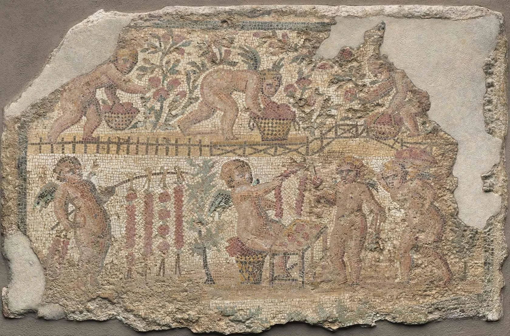 Unknown artist ( Roman, North African), Mosaic Emblema with Cupids Gathering Roses in a Garden, Imperial period, late 2nd-mid-3rd century, MFA Boston.